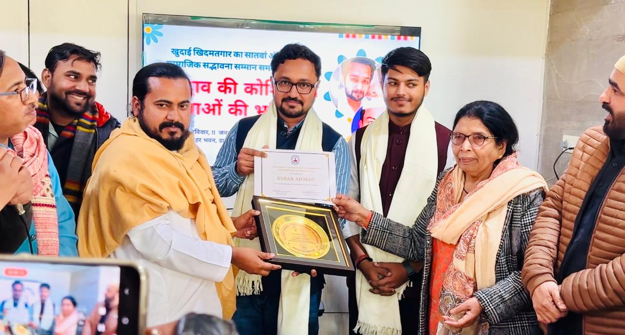 नई दिल्ली: सामाजिक सद्भाव और शांति के क्षेत्र में उल्लेखनीय योगदान के लिए पत्रकार असरार अहमद को प्रतिष्ठित अंकित–जुनैद सोशल हार्मोनी अवार्ड से सम्मानित किया गया है। यह सम्मान खुदाई खिदमतगार संगठन की ओर से प्रदान किया गया, जो खान अब्दुल गफ्फार खान उर्फ फ्रंटियर गांधी की विचारधारा से प्रेरित है और स्वतंत्रता के बाद से अहिंसा, सामाजिक सद्भाव तथा अंतर-धार्मिक एकता के लिए कार्यरत है।