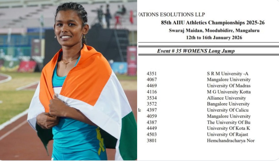 ऑल इंडिया इंटर-यूनिवर्सिटी एथलेटिक्स चैंपियनशिप में एसआरएम यूनिवर्सिटी की मुबसीना मोहम्मद (Mubassina Mohammed) ने महिलाओं की लॉन्ग जंप स्पर्धा में स्वर्ण पदक अपने नाम किया। मुबसीना ने 6.15 मीटर की सर्वश्रेष्ठ छलांग लगाकर यह उपलब्धि हासिल की।