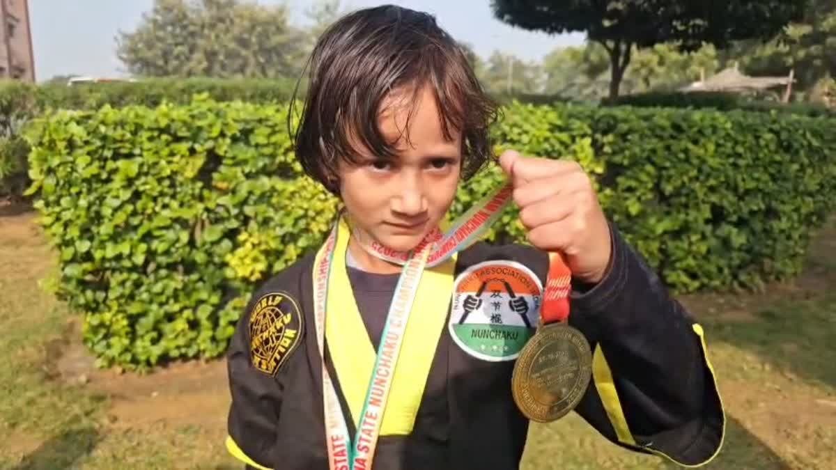 Haryana State Nunchaku Championship: नूंह की 6 वर्षीय ज़ोया खान (Zoya Khan) ने हरियाणा स्टेट ननचाकू चैंपियनशिप 2025 में शानदार प्रदर्शन कर बड़ी उपलब्धि हासिल की है। अपने आयु वर्ग में बेहतरीन खेल का प्रदर्शन करते हुए ज़ोया ने प्रथम स्थान प्राप्त किया और गोल्ड मेडल अपने नाम कर प्रदेश का गौरव बढ़ाया।